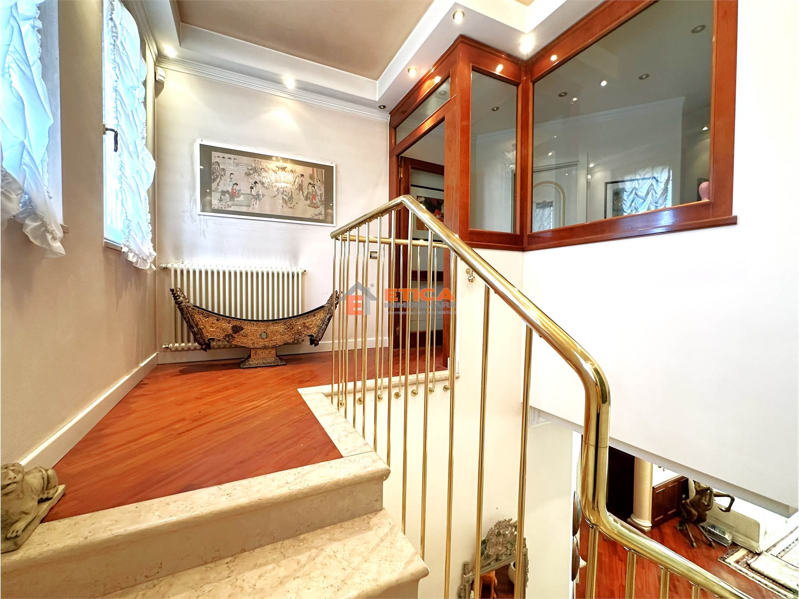 Una scala scenografica accompagna al piano superiore, dove si apre la zona notte: una suite padronale con ampia cabina armadio, due ampie camerette e due bagni completi, studiati per garantire massimo comfort.