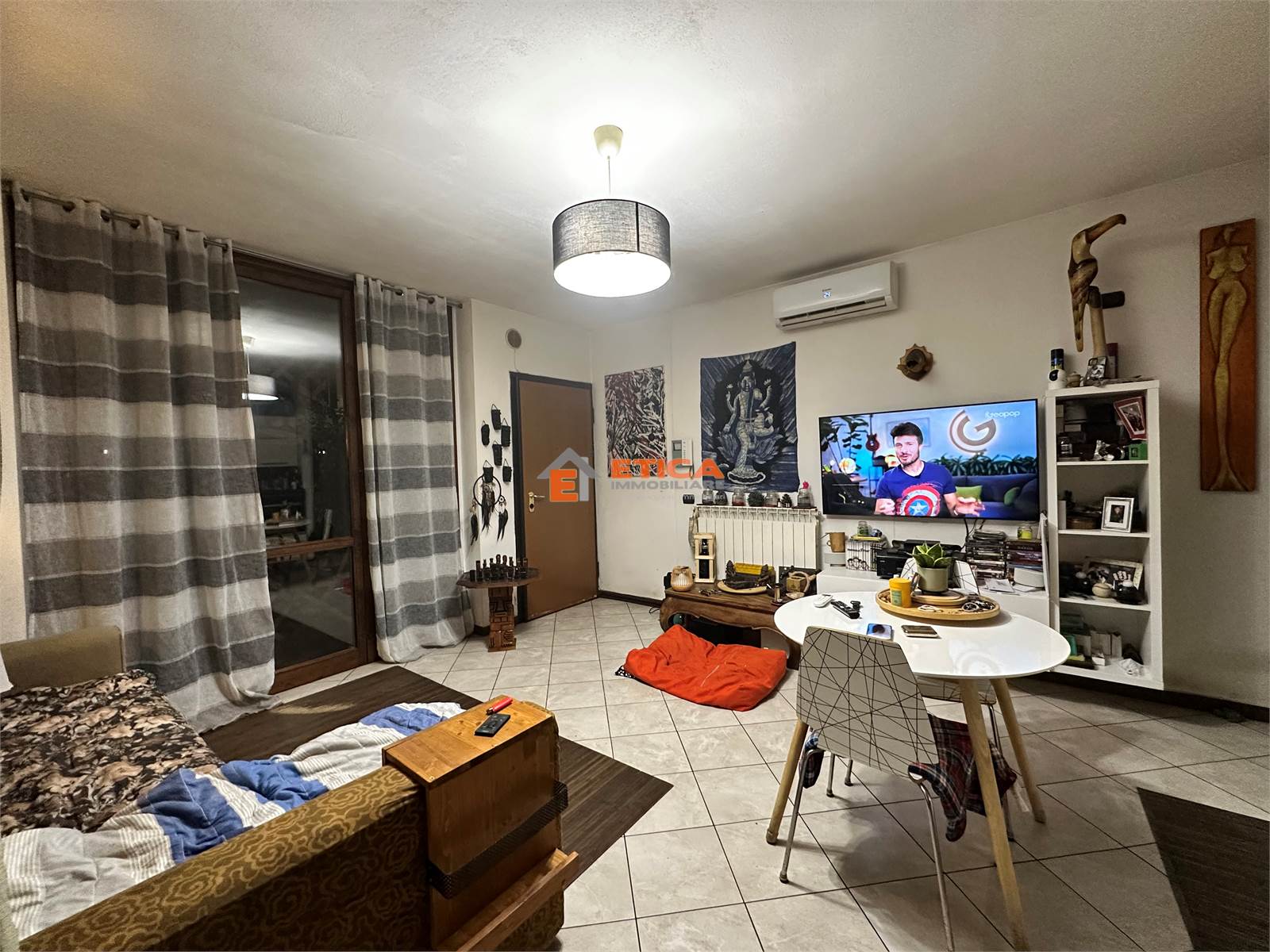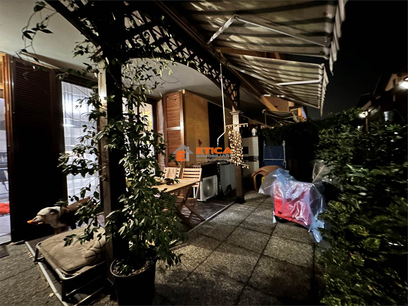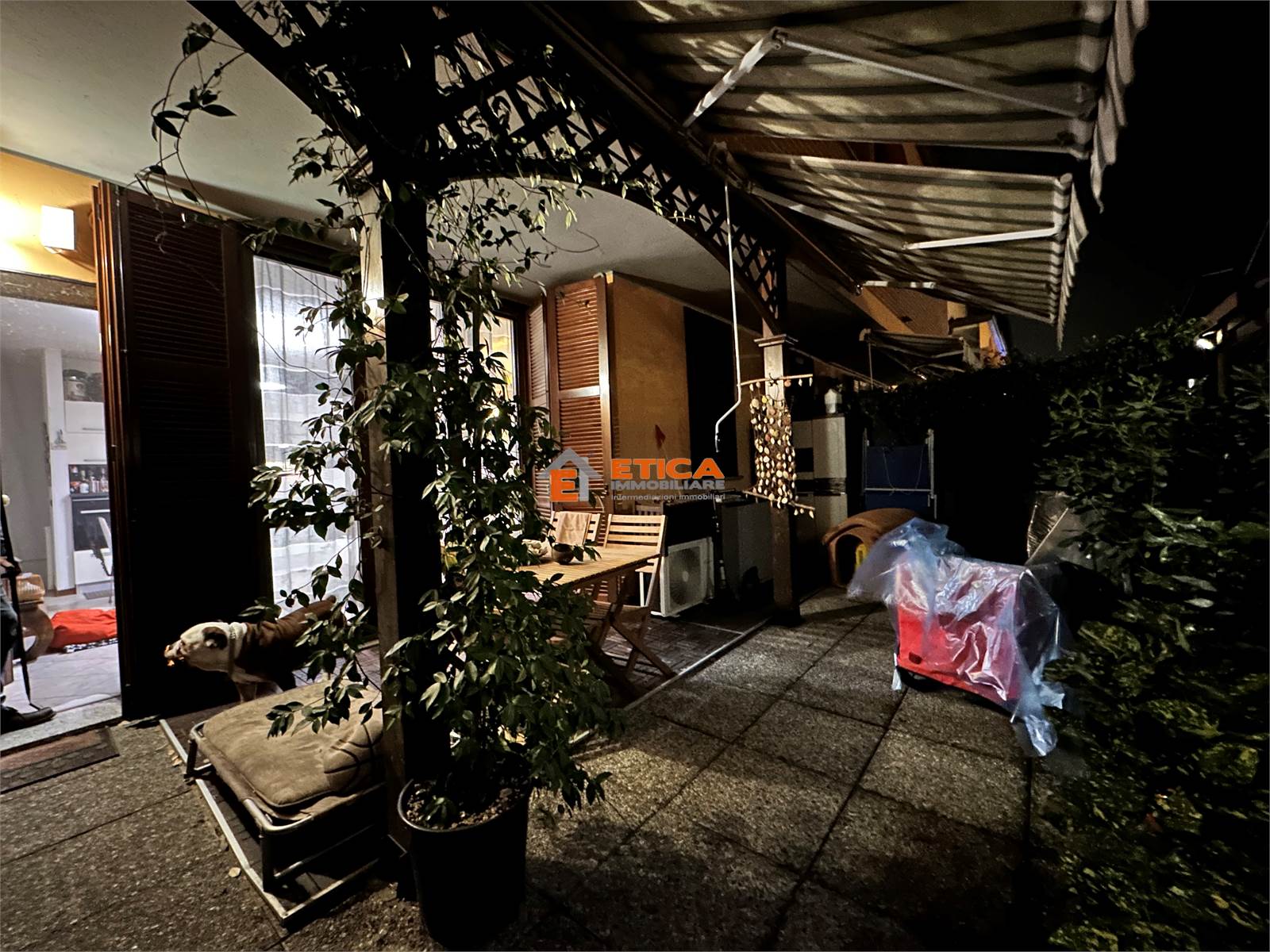 In contesto edificato nel 2006, proponiamo interessante appartamento duplex di 65 mq. con area esterna di proprietà completamente lastricata. Ampio box € 15.000,00.