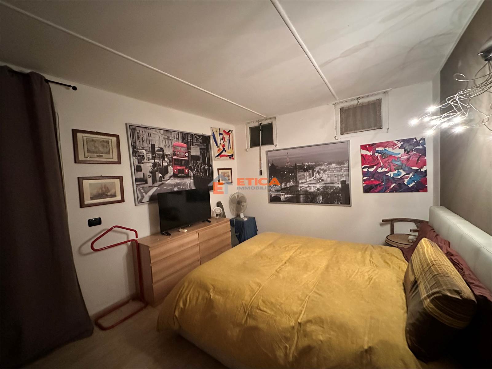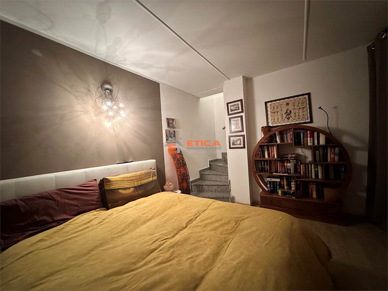 Ingresso privato nell'area esterna di proprietà in parte loggiata da cui si accede all'interno dell'abitazione composta da un locale con angolo cottura, disimpegno adibito a cabina armadio e bagno padronale, scala interna che conduce al locale hobby/taverna attualmente adibita a camera.