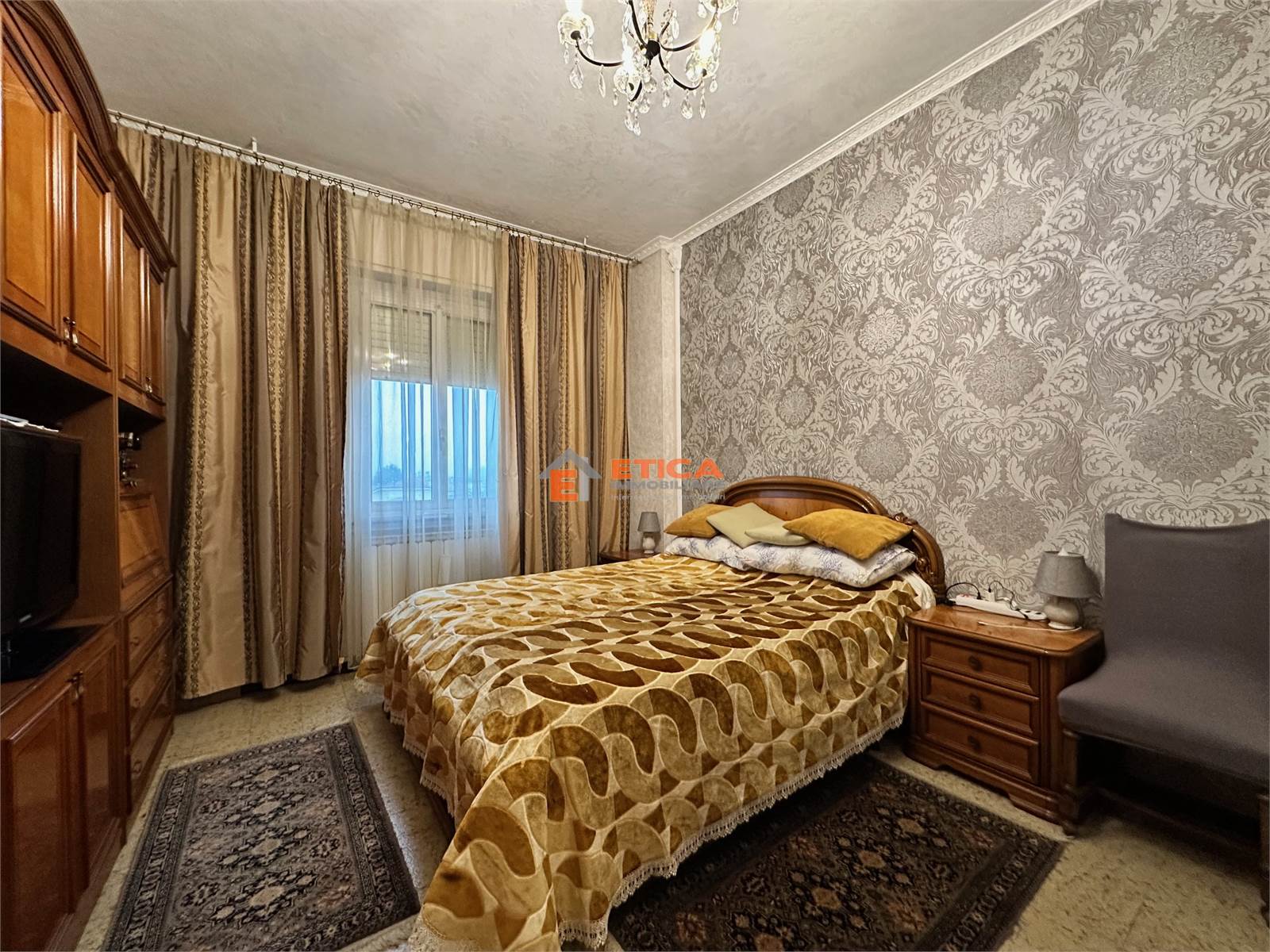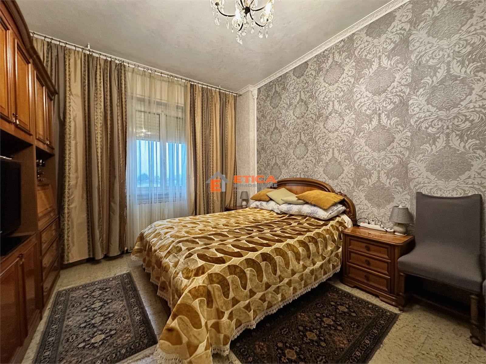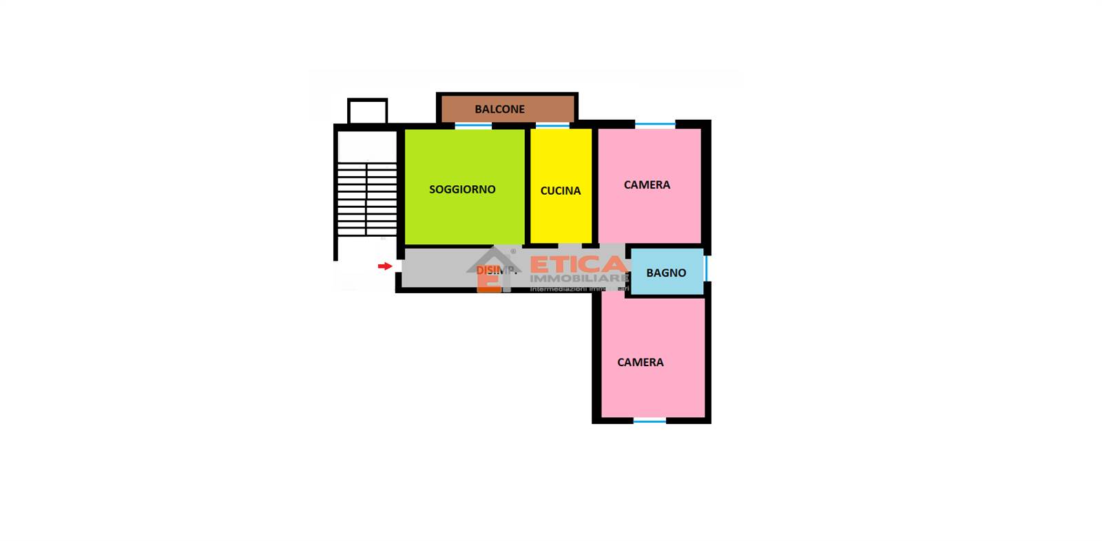 ingresso, ampio disimpegno, soggiorno con accesso al balcone, cucina abitabile, due camere matrimoniali e bagno padronale.