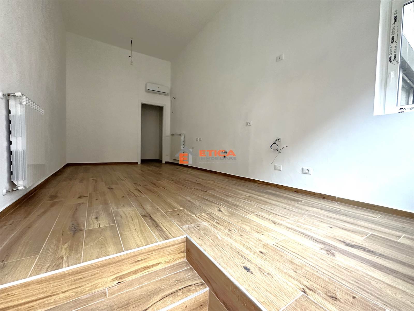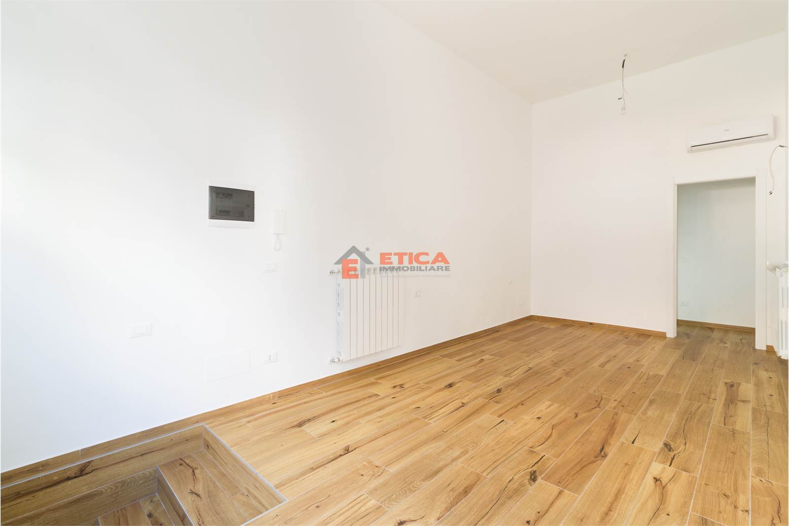 MONOLOCALE dal design contemporaneo e accattivante, offre 32 metri quadrati di superficie ben distribuiti, caratterizzati da un open-space che integra la zona giorno e notte, un disimpegno che porta al bagno padronale. Le generose altezze dei soffitti, di 3,75 metri, conferiscono all'ambiente un'atmosfera luminosa e scenografica, arricchita da materiali di alta qualità come la moderna pavimentazione in gres porcellanato, porta blindata, infissi in PVC con doppio vetro, aria condizionata e impianti elettrico e idraulico certificati. La proprietà sarà consegnata chiavi in mano, possibilità arredo cucina e bagno.
