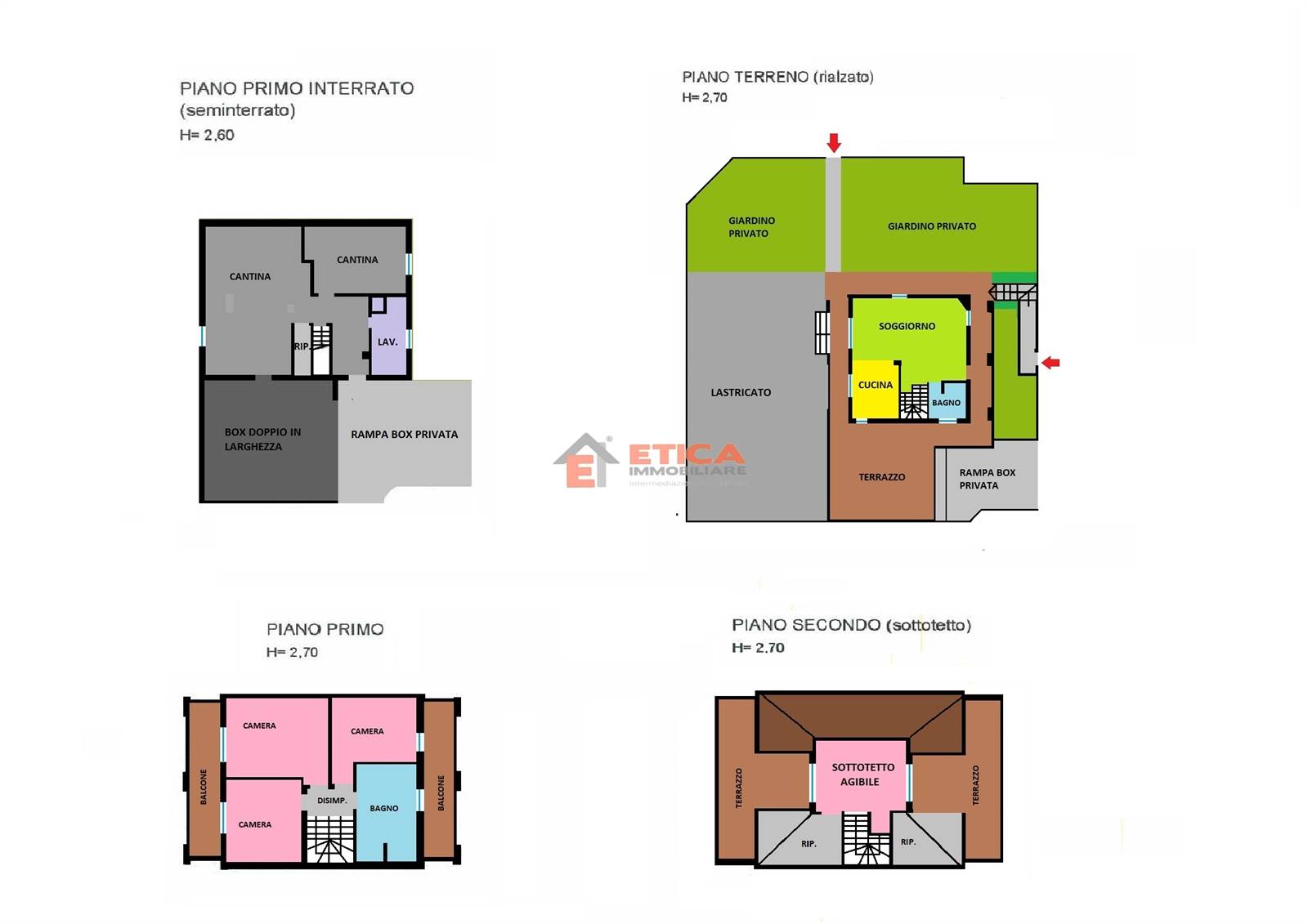 - Piano INTERRATO: una spaziosa taverna, perfetta per creare un ambiente convivale, oltre ad un ampio locale lavanderia, il tutto è direttamente collegato al box doppio in larghezza, che offre ampi spazi di manovra e stoccaggio.