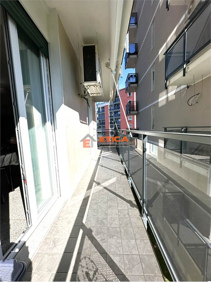 ingresso, ampio disimpegno, soggiorno con cucina abitabile aperta avente accesso al balcone, bagno padronale, due camere matrimoniali con accesso al secondo balcone; completa la proprietà il vano cantina.