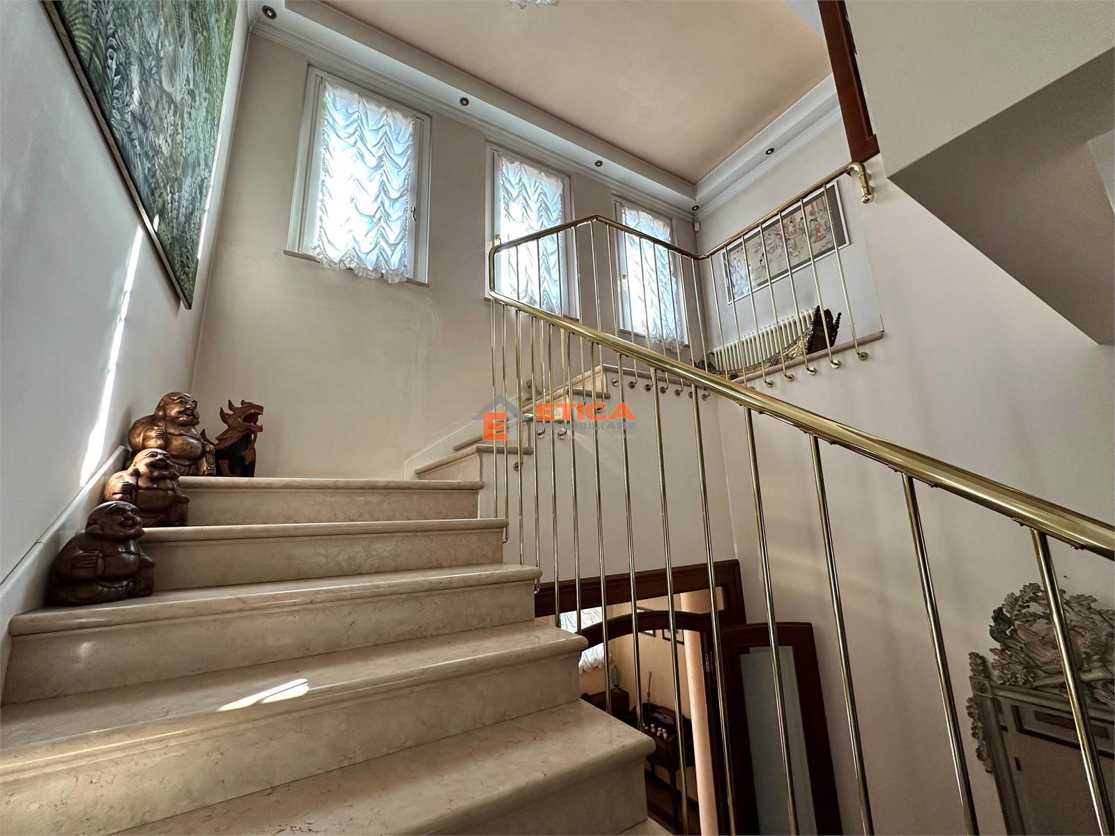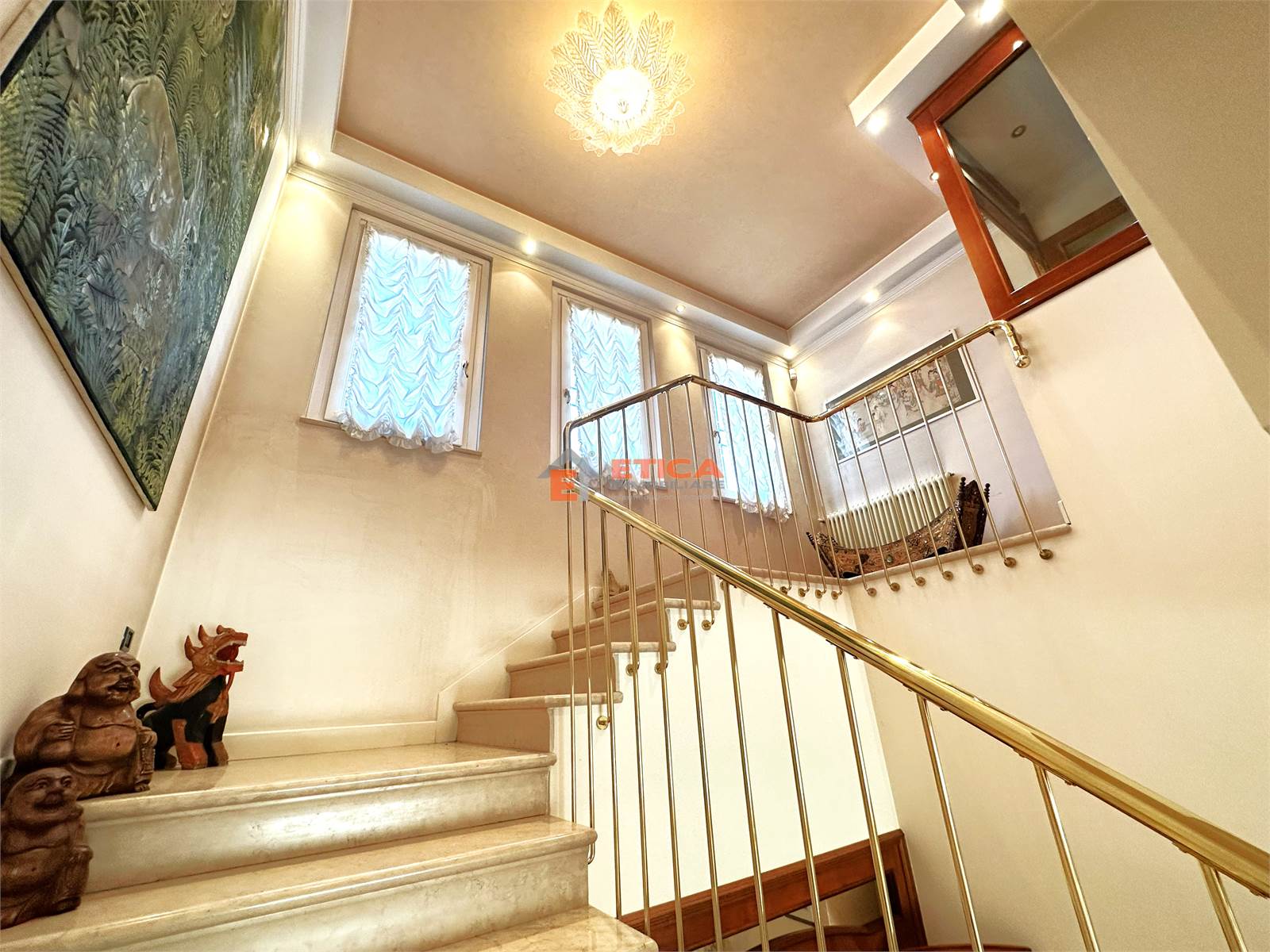 Una scala scenografica accompagna al piano superiore, dove si apre la zona notte: una suite padronale con ampia cabina armadio, due ampie camerette e due bagni completi, studiati per garantire massimo comfort.