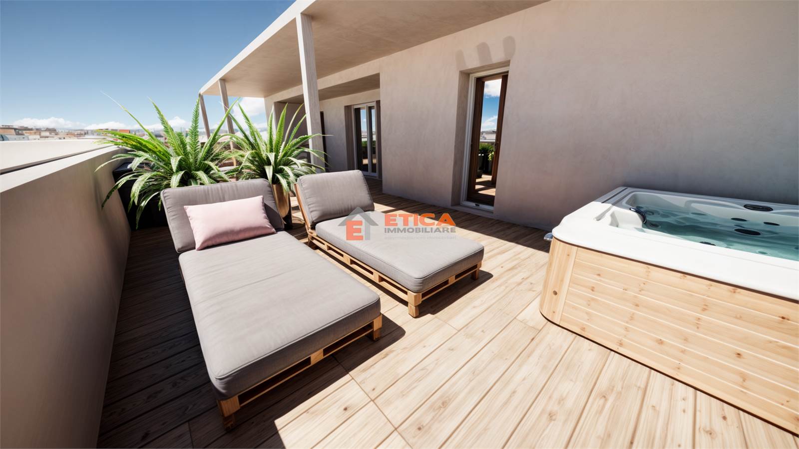 Proponiamo in esclusiva cinque locali oltre servizi di 213,62 MQ., con terrazzi loggiati, possibilità box singoli o doppi.