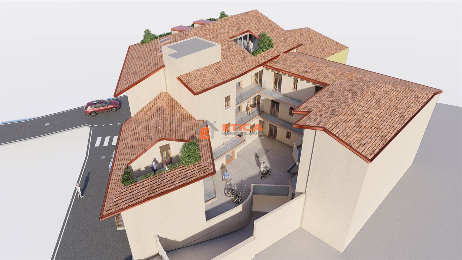 Le abitazioni e gli spazi commerciali sono perfettamente integrati nel contesto architettonico e naturale nel quale sono inseriti e ne valorizzano l’insieme. L’efficienza che caratterizza questo complesso residenziale e commerciale è raggiunta sia grazie all’ottimizzazione delle prestazioni energetiche, che riduce al minimo eventuali dispendi di energia, che grazie alla scelta di utilizzare materiali riciclabili ed ecocompatibili, che non danneggino l’ambiente. I box al piano interrato sono dotati della predisposizione per la ricarica di auto elettriche, ibride e di altri mezzi che richiedono la stessa alimentazione.