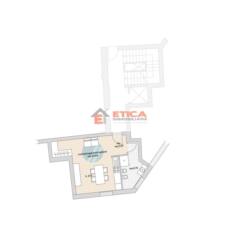 L'appartamento è composto da soggiorno/cucina/camera in un unico ambiente e un bagno. Possibilità acquisto box.