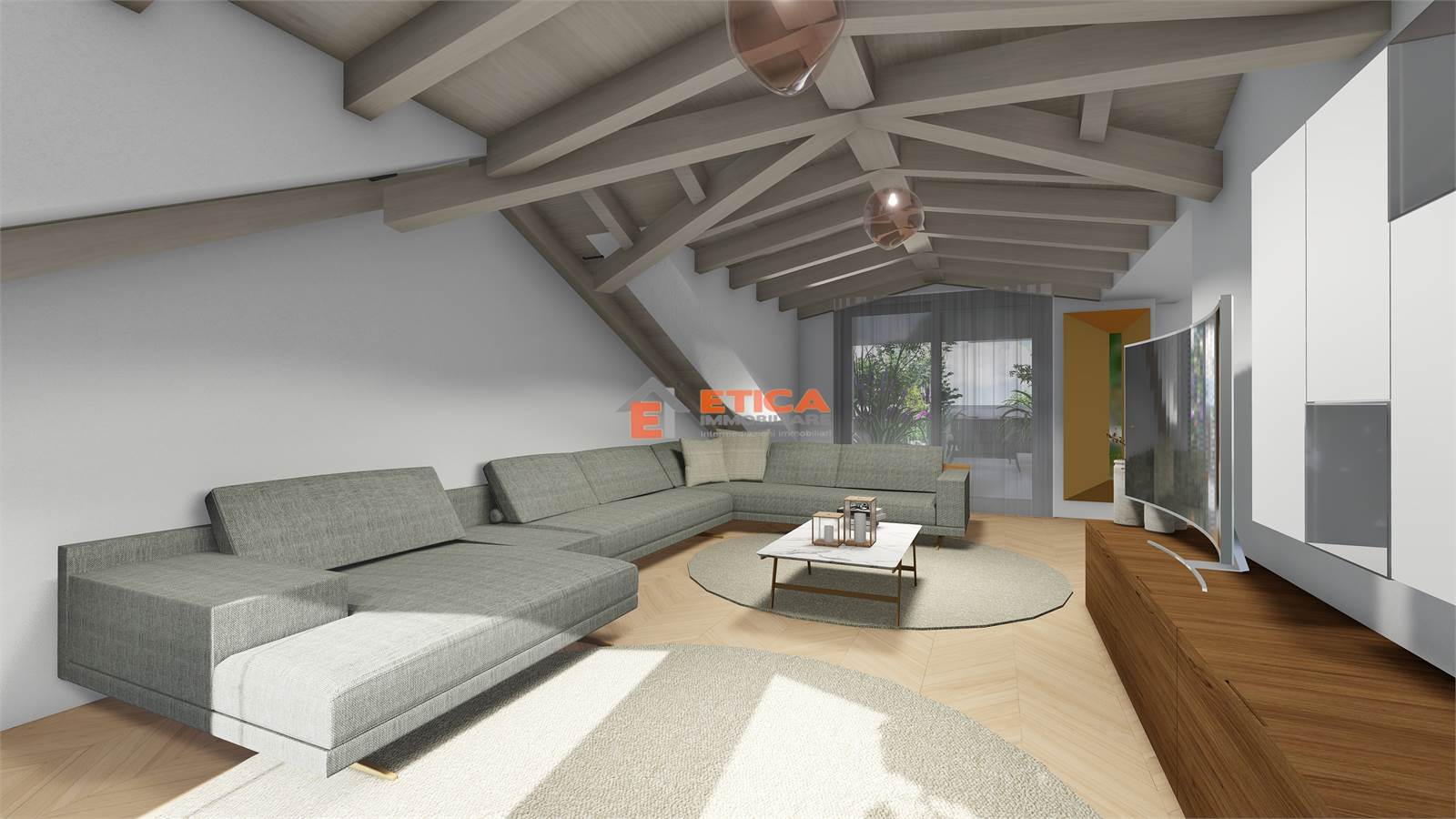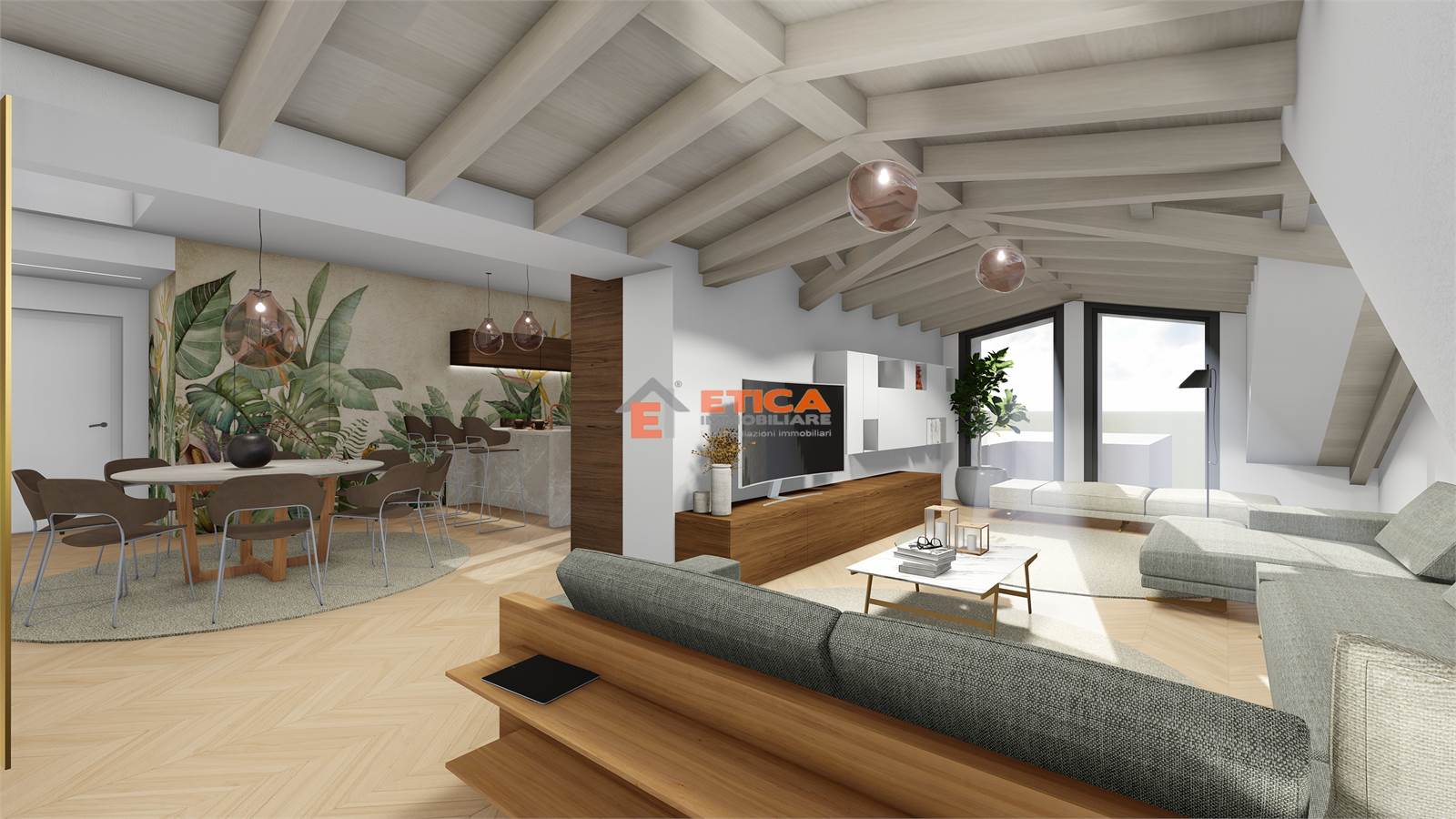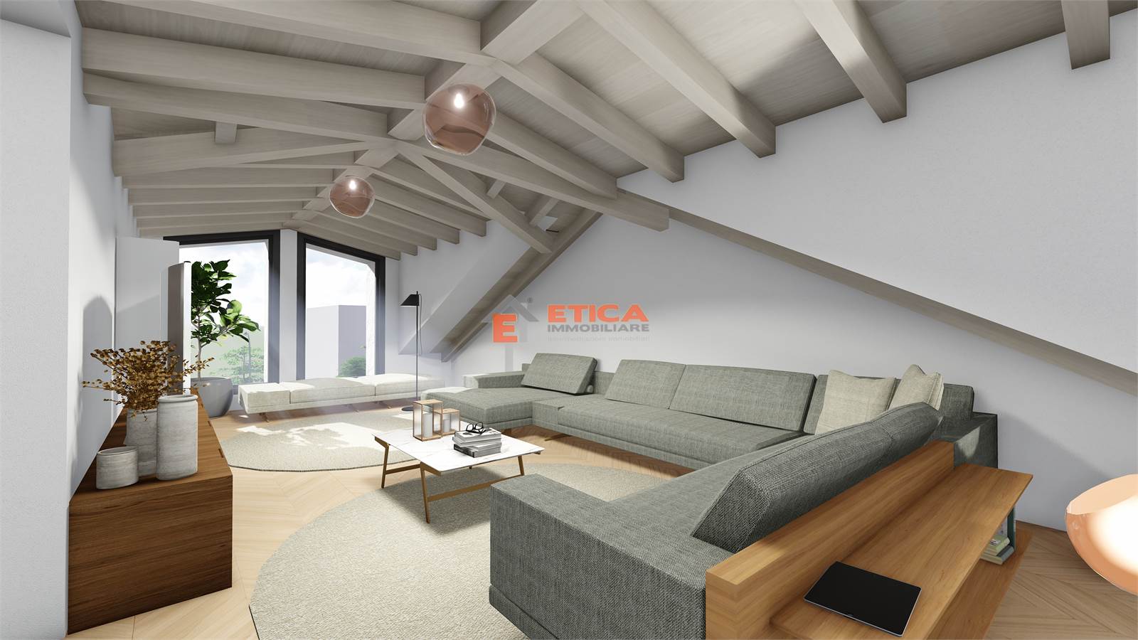 ATTICO DI 170 mq. composto da 4 locali, con doppi servizi, locale hobby, terrazzo loggiato di 102 mq., cantina annessa e poss. box.