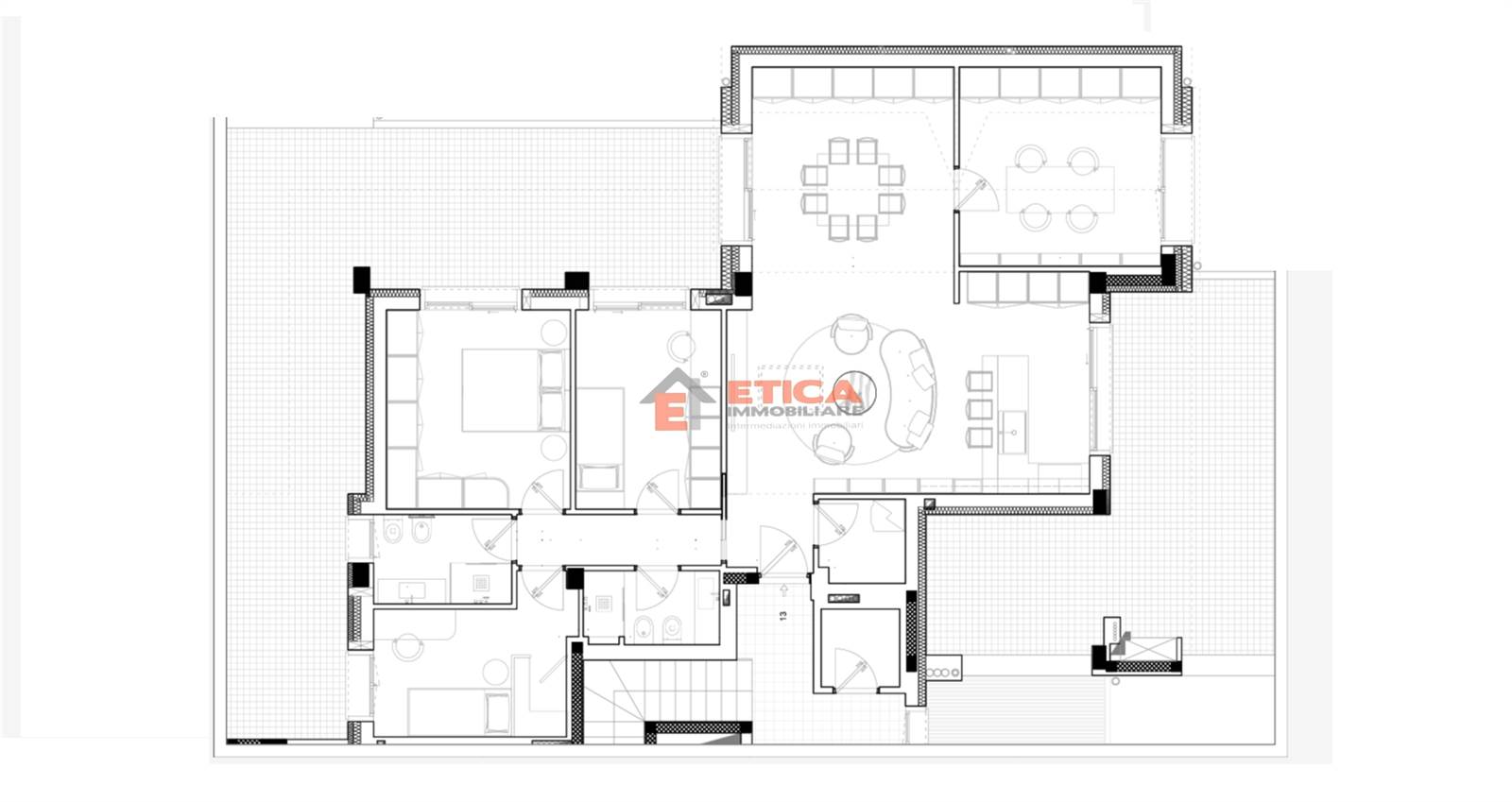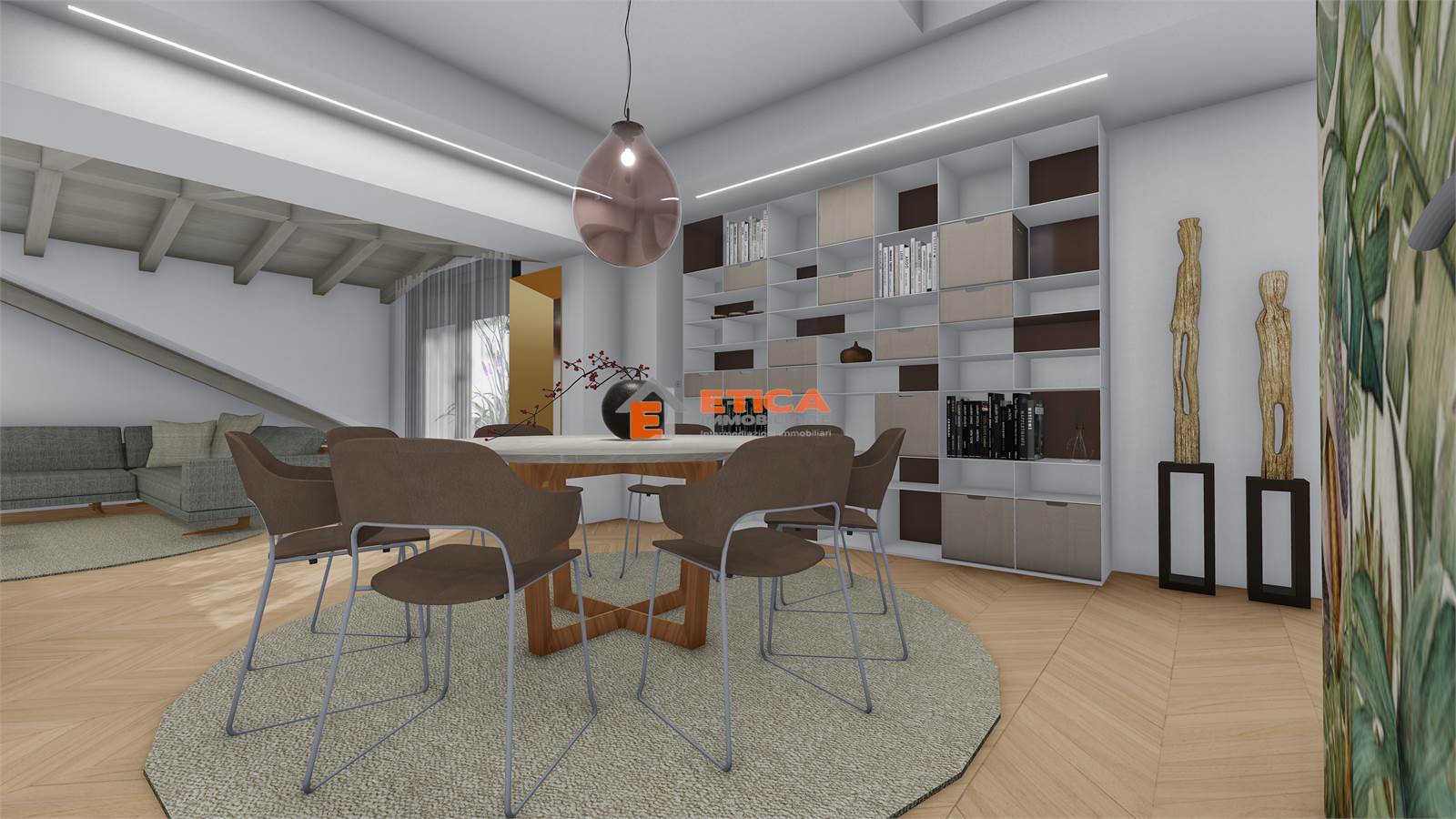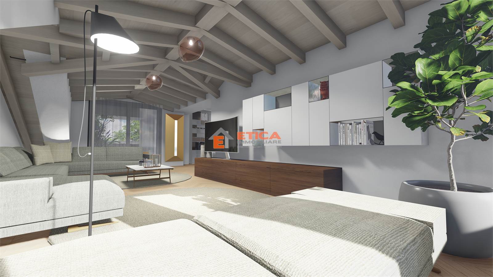 ATTICO DI 170 mq. composto da 4 locali, con doppi servizi, locale hobby, terrazzo loggiato di 102 mq., cantina annessa e poss. box.